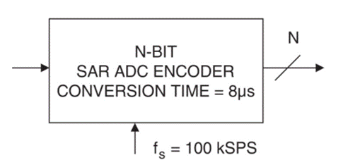 回到上面的計算,SHA在2 μs內(nèi)進行信號采樣,而編碼器在后面8 μs中進行A-to-D的轉(zhuǎn)換,因此采樣總周期仍為10 μs,滿足100 ksps的采樣率要求,但此時采樣ADC在理想情況下可處理50 kHz的輸入頻率。