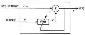 為了實現(xiàn)這個自適應噪聲消除系統(tǒng),這里使用2個輸入源和1個自適應濾波器。一個輸入源是混入了噪聲的信號(稱之為主輸入源,用s十n0表示),另一個輸入源為背景噪聲,這個背景噪聲與主輸入源噪聲相關,而與主輸入源中的信號無關(稱之為噪聲參考輸入源,用n1表示),噪聲參考輸入源通過自適應濾波器后輸出yo濾波器不斷地自我重新調(diào)整,使得y與n0的誤差達到很小。然后用主信號源減去輸出y得到系統(tǒng)的輸出z=s n0-y,z即去噪后的信號。