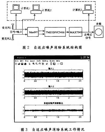 圖3為3臺計算機記錄的自適應噪聲消除系統(tǒng)的工作情況: