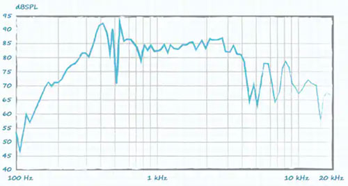 該圖表示在不同頻率下輸入恒定的功率會(huì)產(chǎn)生多少分貝的聲壓級(jí),該圖相對(duì)平坦,整個(gè)頻譜范圍內(nèi)的變化最小。除了 70 Hz 以下的部分急劇下降外,該音頻設(shè)備在相同輸入功率下,會(huì)在 20 Hz 和 70 kHz 范圍內(nèi)產(chǎn)生穩(wěn)定的聲壓級(jí)。任何低于 70 Hz 的設(shè)備都會(huì)產(chǎn)生較低的聲壓級(jí) (SPL) 輸出。
