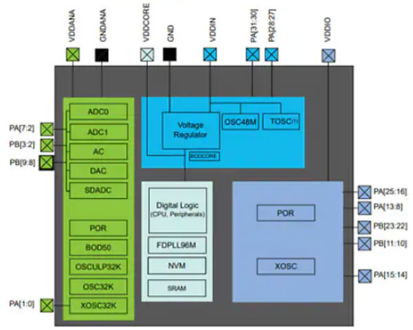 圖14:PIC32CM1216MC00048-I/U5B功率域概覽 (圖源:Microchip)
