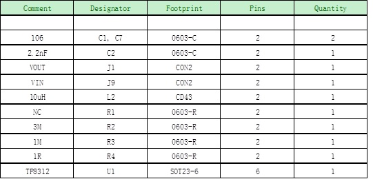 TP8312應(yīng)用于單節(jié)干電池1.5V、雙節(jié)干電池3V、單節(jié)鋰電池3.7V升壓典型參數(shù)如下: