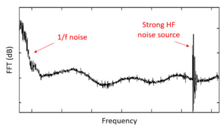 您可能希望從時域PDN紋波測量中看到FFT結果。強大的高頻噪聲源對背景噪聲非常明顯