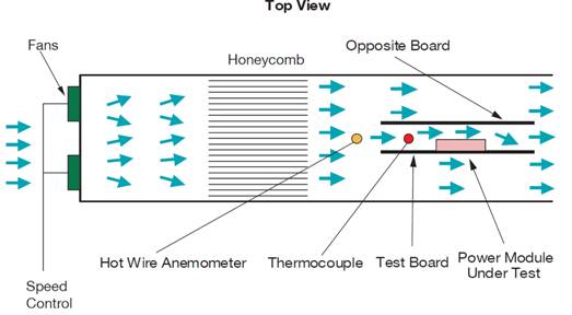 圖 1:表征 DC-DC 轉(zhuǎn)換器溫度降額特性的測試設(shè)置。(來源:Flex Power Modules )