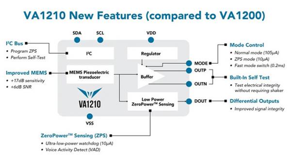 在約一年之前發(fā)布的VA1200產(chǎn)品基礎(chǔ)上,壓電MEMS傳感器創(chuàng)新公司Vesper開發(fā)了具有“ZeroPower Sensing”功能的智能壓電語音加速度計(jì)VA1210,以提高TWS耳機(jī)中振動(dòng)和骨傳導(dǎo)傳感器的潛力。Vesper新款VA1210使用直接嵌入傳感器的自適應(yīng)智能技術(shù)來分析聲學(xué)環(huán)境,并僅在需要時(shí)開啟系統(tǒng)。對(duì)于TWS耳機(jī),VA1210增加了高保真VPU、自動(dòng)靜音、敲擊檢測(cè)和語音認(rèn)證等功能,這些功能對(duì)于新的高效語音設(shè)計(jì)至關(guān)重要。