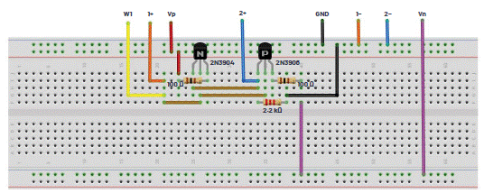 圖2.推挽輸出級面包板電路