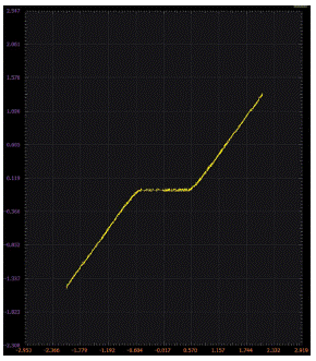 V。在x-y模式下使用示波器觀察電路的電壓傳輸曲線。圖4為Scopy XY波形圖示例。