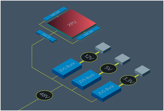 大電流傳輸通過模塊化電流倍增器 (MCM) 模塊實現(xiàn),這些模塊布置在主板或處理器基板上,與處理器相鄰。將 MCM 布置在基板上,不僅可最大限度降低 PDN