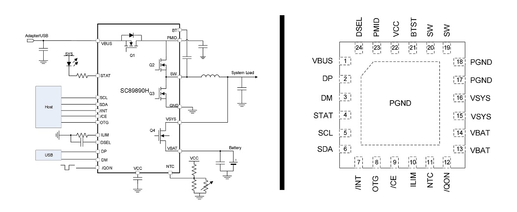 據(jù)了解,南芯SC89890H采用QFN 4×4-24封裝,輸入端支持高達(dá)22V耐壓。芯片集成了反向阻斷管(RBFET)、降壓功率管(HSFET及LSFET)、功率路徑管理管(BATFET)、功率管驅(qū)動(dòng)供電及自舉二極管,可在應(yīng)用是大幅度簡化了系統(tǒng)設(shè)計(jì)。南芯SC89890H支持高達(dá)5A充電電流以及2.4A反向OTG電流,并且充電參數(shù)可通過I²C接口由手機(jī)處理器靈活配置。