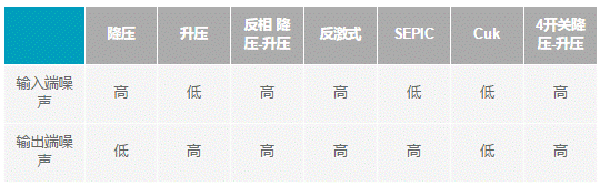 表1. 常用開關穩(wěn)壓器拓撲及其輸入和輸出端噪聲特性概覽