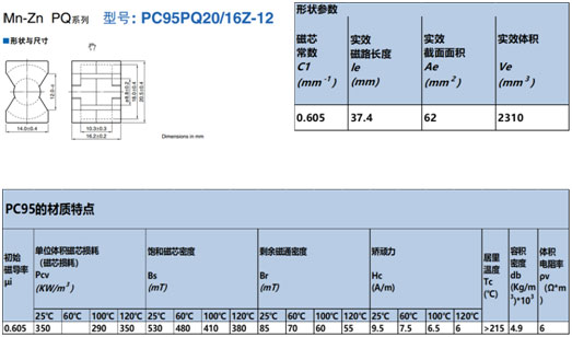 此方法適用于利用磁芯來設(shè)計(jì)電感的場(chǎng)景。磁芯參數(shù)包括磁路長(zhǎng)度le,有效面積Ae等。磁芯的型號(hào)還決定了相應(yīng)的磁材牌號(hào),磁材對(duì)磁芯損耗,飽和磁通密度等做了相應(yīng)規(guī)定。
