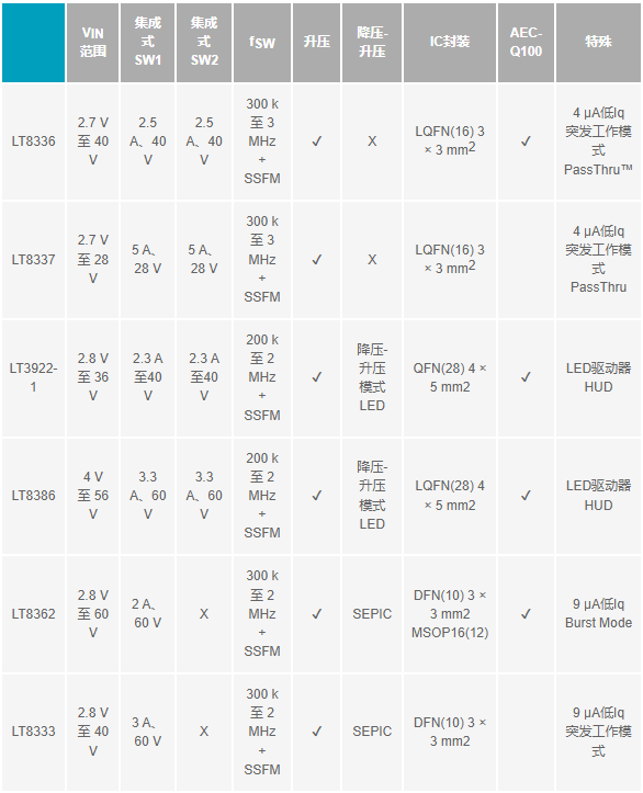 DC-DC轉(zhuǎn)換設(shè)定了黃金標(biāo)準(zhǔn)。在過去5年多的時(shí)間里,我們了解到了大量這些低EMI同步降壓和升壓轉(zhuǎn)換器。這些DC-DC轉(zhuǎn)換器簡化了在高功率、噪聲敏感環(huán)境中的系統(tǒng)級EMC設(shè)計(jì),例如冷啟動(dòng)預(yù)升壓、驅(qū)動(dòng)大電流LED串和高壓功率放大器聲音系統(tǒng)。與基于控制器的設(shè)計(jì)相比,單芯片(集成電源開關(guān))升壓穩(wěn)壓器提供了一種更緊湊的高效解決方案,通常用于5