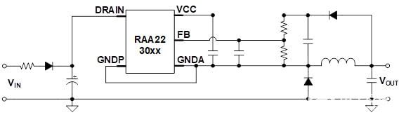圖 3:RAA2230xx 700V 穩(wěn)壓器系列原理圖
