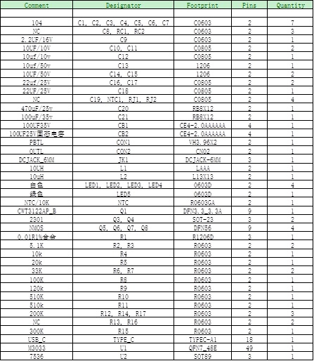 7.M3033 DEMO板物料清單
