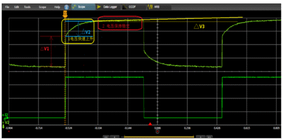 瞬態(tài)響應(yīng)是指電源在負(fù)載電流突變時(shí),電壓跌落和過沖的波形特征,評(píng)價(jià)指標(biāo)有響應(yīng)時(shí)間為電壓恢復(fù)到輸出值的持續(xù)時(shí)間,和過沖幅度百分比或絕對(duì)電壓值。