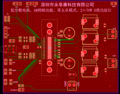 - 主從模式可編程控制,可實現(xiàn)無限級聯(lián)功率輸出,滿足2.1、4.0、5.1等多聲道應用;