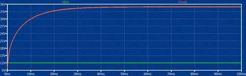 圖四中的曲線圖顯示了Boost A-B模式下的輸入和輸出電壓。其輸入電壓為12 V,輸出電壓約為35V,因此電路可用作升壓器。其開關頻率選擇為10 kHz,輸出端負載為22 Ohm,功耗約為55W。