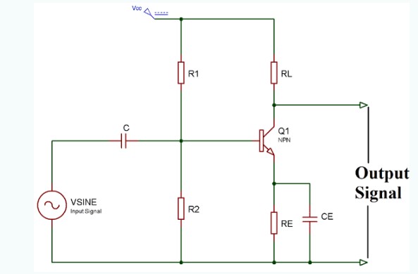 A類是最常見的功率放大器配置,它僅由一個(gè)設(shè)置為始終保持開啟的開關(guān)晶體管組成,產(chǎn)生輸出信號(hào)的最小失真和最大幅度。A類推挽放大器的效率非常低,接近30%。即使沒有連接輸入信號(hào),A類推挽放大器的級(jí)也允許相同數(shù)量的負(fù)載電流流過它,因此輸出晶體管需要大型散熱器。A類推挽放大器的電路圖如下: