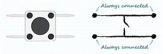 大多數(shù)觸摸開關(guān)包含四個(gè)引腳,用于在PCB上安裝期間起穩(wěn)定作用。這四個(gè)引腳內(nèi)部連接成兩組。雖然從技術(shù)上講,只有兩根導(dǎo)線需要用于布線,但最佳做法是使用所有可能的引腳。此外,有些觸摸開關(guān)只有兩個(gè)可用引腳,也有5引腳版本,這種版本可在非常小的封裝中實(shí)現(xiàn)類似操縱桿的控制功能。