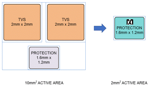 所有引腳均采用了ESD保護(hù)結(jié)構(gòu),以防止在處理和組裝過程中遭受高達(dá)±2kV(人體模型)的靜電放電。COMA和COMB(圖2和圖3)進(jìn)一步受到高達(dá)±15kV(人體模型)、±15kV(IEC 61000-4-2中描述的氣隙放電方法)和±8kV(IEC61000-4-2中描述的接觸放電方法)的ESD保護(hù),且不會造成損壞。ESD結(jié)構(gòu)在正常運(yùn)行和設(shè)備斷電時(shí)均可承受高ESD。在ESD事件之后,IC繼續(xù)工作,而不會發(fā)生閂鎖。該IC受到-30V至+45V(IEC61000-4-5)的浪涌保護(hù)和高達(dá)+20.5V的過壓保護(hù)。圖4將這種高度集成的擴(kuò)展保護(hù)解決方案的PCB布局與提供純正電涌保護(hù)及較低OV和ESD保護(hù)的典型競爭產(chǎn)品進(jìn)行了比較。后者需要額外的電路來滿足ESD/浪涌/OV規(guī)范要求,增加了BOM成本, 并且PCB占用空間擴(kuò)增了5倍。