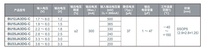 新產(chǎn)品“BUxxJA3DG-C系列”滿足對車載產(chǎn)品的基本要求,比如125℃工作、符合汽車電子產(chǎn)品可靠性標(biāo)準(zhǔn)“AEC-Q100”、車載二次側(cè)LDO穩(wěn)壓器所需的小封裝尺寸以及輸出電壓擴展需求。