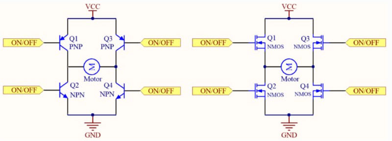 圖2:H橋電機驅(qū)動電路(圖源:硬件攻城獅博文)
