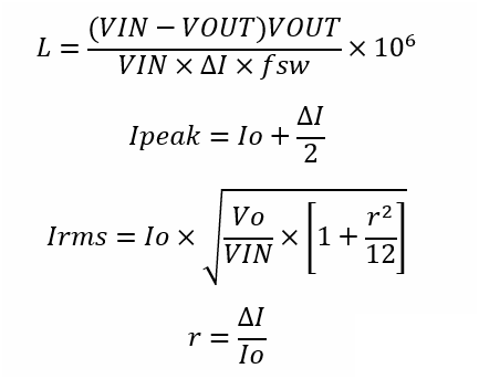 電感是降壓電路的核心器件,關(guān)系到整個電源的運行。式中IRIPPLE表示電感的紋波電流,是電感電流的峰峰值。一般取電感平均電流的30%-40%。降壓電路的平局電感電流等于輸出電流,L算出來的單位是uH。根據(jù)電感的峰值電流選擇合適的電感和磁芯,峰值電流必須小于電感的額定電流,以保證磁芯不飽和。根據(jù)電感的有效值電流計算電感損耗以及發(fā)熱是否在可控范圍內(nèi)。