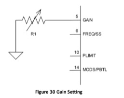 ACM3128A pin5(GAIN)用來(lái)設(shè)置增益,接一個(gè)電阻到地,不同電阻對(duì)應(yīng)不同增益,四個(gè)檔位。