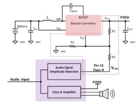 動(dòng)態(tài)調(diào)整升壓CLASS H功能、40W立體聲/80W單聲道D類(lèi)音頻功放IC |