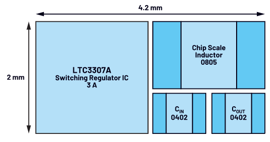 圖2.開關(guān)模式電壓轉(zhuǎn)換器對3 A輸出電流的空間要求。