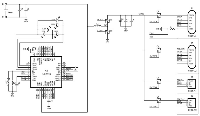 M12239是一款面向雙路獨立的多電芯大功率移動電源應(yīng)用的專用 SOC,集成了同步升降壓變換器、電池 充放電管理模塊、顯示模塊、電量計算模塊,提供最大 140W 輸入/輸出功率,支持 PD3.1、QC3.0、AFC、FCP、SCP、BC1.2 DCP 等主流快充協(xié)議,并提供過壓/欠壓、過充/過放、過溫等完備的保護功能。配合極簡的外圍 電路,即可組成單 C口大功率移動電源。輔以DC-DC芯片,可以擴展為3-8串電池雙路獨立的多口大功率移動電源。 |