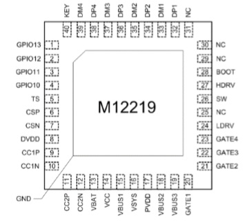 M12239是一款面向雙路獨(dú)立的多電芯大功率移動(dòng)電源應(yīng)用的專用 SOC,集成了同步升降壓變換器、電池 充放電管理模塊、顯示模塊、電量計(jì)算模塊,提供最大 140W 輸入/輸出功率,支持 PD3.1、QC3.0、AFC、FCP、SCP、BC1.2 DCP 等主流快充協(xié)議,并提供過(guò)壓/欠壓、過(guò)充/過(guò)放、過(guò)溫等完備的保護(hù)功能。配合極簡(jiǎn)的外圍 電路,即可組成單 C口大功率移動(dòng)電源。輔以DC-DC芯片,可以擴(kuò)展為3-8串電池雙路獨(dú)立的多口大功率移動(dòng)電源。 |