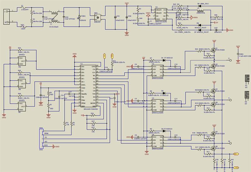 4.針對功能比較復(fù)雜的需要實現(xiàn)功能較多的三相電機驅(qū)動。