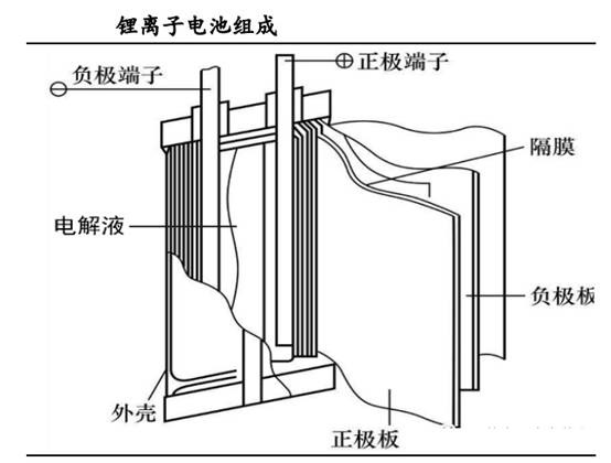 在鋰離子電池中,正極材料通常是由鋰金屬氧化物或磷酸鐵鋰等材料組成,負極材料通常是由碳或石墨等材料組成,而電解液通常是由有機溶劑和鋰鹽組成的溶液。