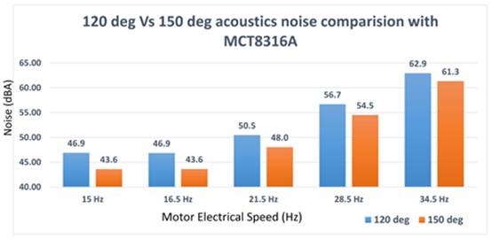 為了應(yīng)對這些挑戰(zhàn)并提高聲學(xué)性能,工程師可以構(gòu)建能夠在 120 度梯形換向和 150 度梯形換向之間動態(tài)切換的電機(jī)驅(qū)動器系統(tǒng)。這種動態(tài)調(diào)制可以改善 BLDC 電機(jī)控制期間的整體聲學(xué)性能。