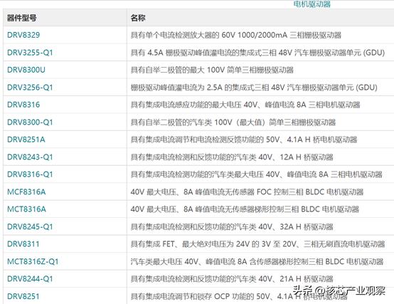 TI是電機(jī)驅(qū)動(dòng)芯片領(lǐng)域的老玩家了,其電機(jī)驅(qū)動(dòng)器產(chǎn)品包括了柵極驅(qū)動(dòng)器、H橋驅(qū)動(dòng)器、有刷電機(jī)驅(qū)動(dòng)器,以及BLDC電機(jī)驅(qū)動(dòng)器等產(chǎn)品類型。產(chǎn)品種類和型號(hào)也很豐富,近12個(gè)月就推出了19款新的電機(jī)驅(qū)動(dòng)器產(chǎn)品。