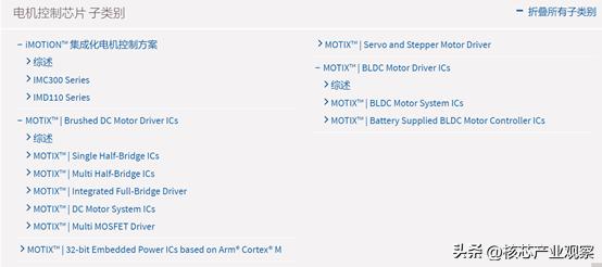 ST在電機(jī)驅(qū)動(dòng)器產(chǎn)品方面這幾年也投入不少,從其工業(yè)峰會(huì)中就可見一斑,這幾年的ST工業(yè)峰會(huì)都會(huì)單獨(dú)有一個(gè)電機(jī)控制分論壇。從其官網(wǎng)可以看到ST在電機(jī)驅(qū)動(dòng)器方面有MOSFET和IGBT驅(qū)動(dòng)器、無刷直流電機(jī)驅(qū)動(dòng)器、有刷直流電機(jī)驅(qū)動(dòng)器和步進(jìn)電機(jī)驅(qū)動(dòng)器四個(gè)大類的產(chǎn)品。