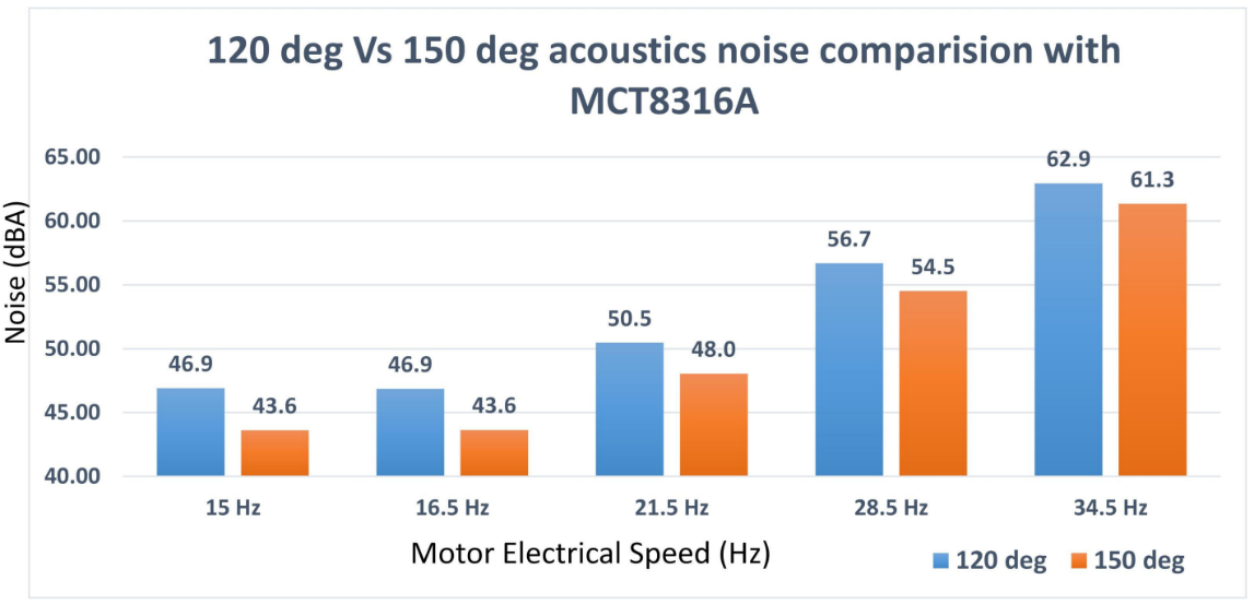 為了應對這些挑戰(zhàn)并提高聲學性能,工程師可以構(gòu)建能夠在 120 度梯形換向和 150 度梯形換向之間動態(tài)切換的電機驅(qū)動器系統(tǒng)。這種動態(tài)調(diào)制可以改善 BLDC 電機控制期間的整體聲學性能。