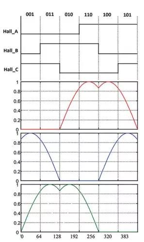 目前有三種電子換向控制方案:梯形、正弦和磁場定向控制 (FOC)。FOC 實現(xiàn)成本高,專用于高端應(yīng)用,因此本文不做討論。