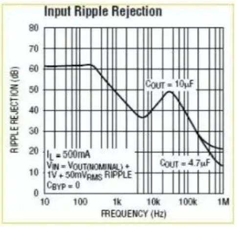 任何一款LDO都有一項指標(biāo):噪音抑制比。是一條頻率-dB曲線,如下圖是凌特公司LT3024的曲線。