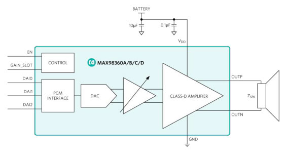 圖 3. MAX98360 數(shù)字 D 類放大器。