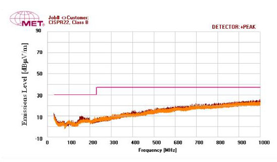 圖 5. 使用12英寸的 MAX98360 EMI 性能。帶狀線負載。