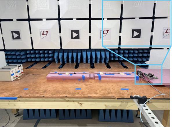 圖3.EMI測試室(50 mm)中的CISPR 25電流探頭傳導(dǎo)輻射(CE)設(shè)置