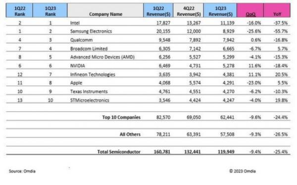 | Omdia:半導(dǎo)體市場(chǎng)的下行態(tài)勢(shì)延續(xù)至第五季度 |