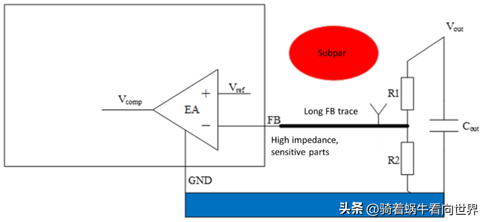 圖 8:長 FB 走線更易耦合非實(shí)反饋