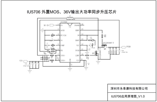 IU5706E是高性能寬輸入范圍(4.5V-30V)同步升壓控制器,支持高達38V的輸出電壓。輸出電壓采用恒定頻率電流模式脈寬調(diào)制(PWM)控制來實現(xiàn)調(diào)節(jié)。