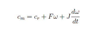 機(jī)械負(fù)載的行為幾乎總是非線性的。負(fù)載的線性模型可以通過將電機(jī)扭矩 cm 等于三個參數(shù)之和來獲得:施加在電機(jī)軸上的負(fù)載扭矩,根據(jù)摩擦系數(shù) F 與電機(jī)旋轉(zhuǎn)速度成比例的參數(shù),以及與電機(jī)轉(zhuǎn)速對轉(zhuǎn)動慣量J的導(dǎo)數(shù)成正比的參數(shù);那是: