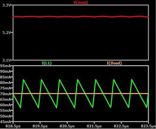 讓我們刷新一下。上次我們用這兩張圖來(lái)結(jié)束:在 LTspice 中實(shí)現(xiàn)的降壓轉(zhuǎn)換器的原理圖(圖 1);以及輸出電壓和電感電流的仿真結(jié)果(圖 2),其中包含恒定的 70 mA 負(fù)載電流作為參考。
