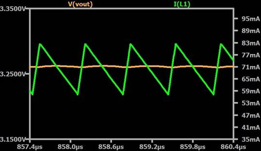 我們的設(shè)計(jì)目標(biāo)是電感紋波電流為 30%,這意味著和電感電流應(yīng)為 80.5 mA 和 59.5 mA:
