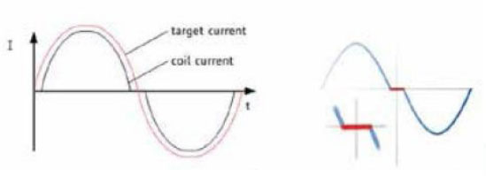在一個完整的電周期內(nèi),電流方向改變時在正弦波過零處有個平穩(wěn)過渡期,這個會影響在很短的 過渡期內(nèi)線圈里面的電流為零,也就是電機此時根本就沒有力矩,這就導(dǎo)致了電機擺動和振動,尤其是在低速情況下。
